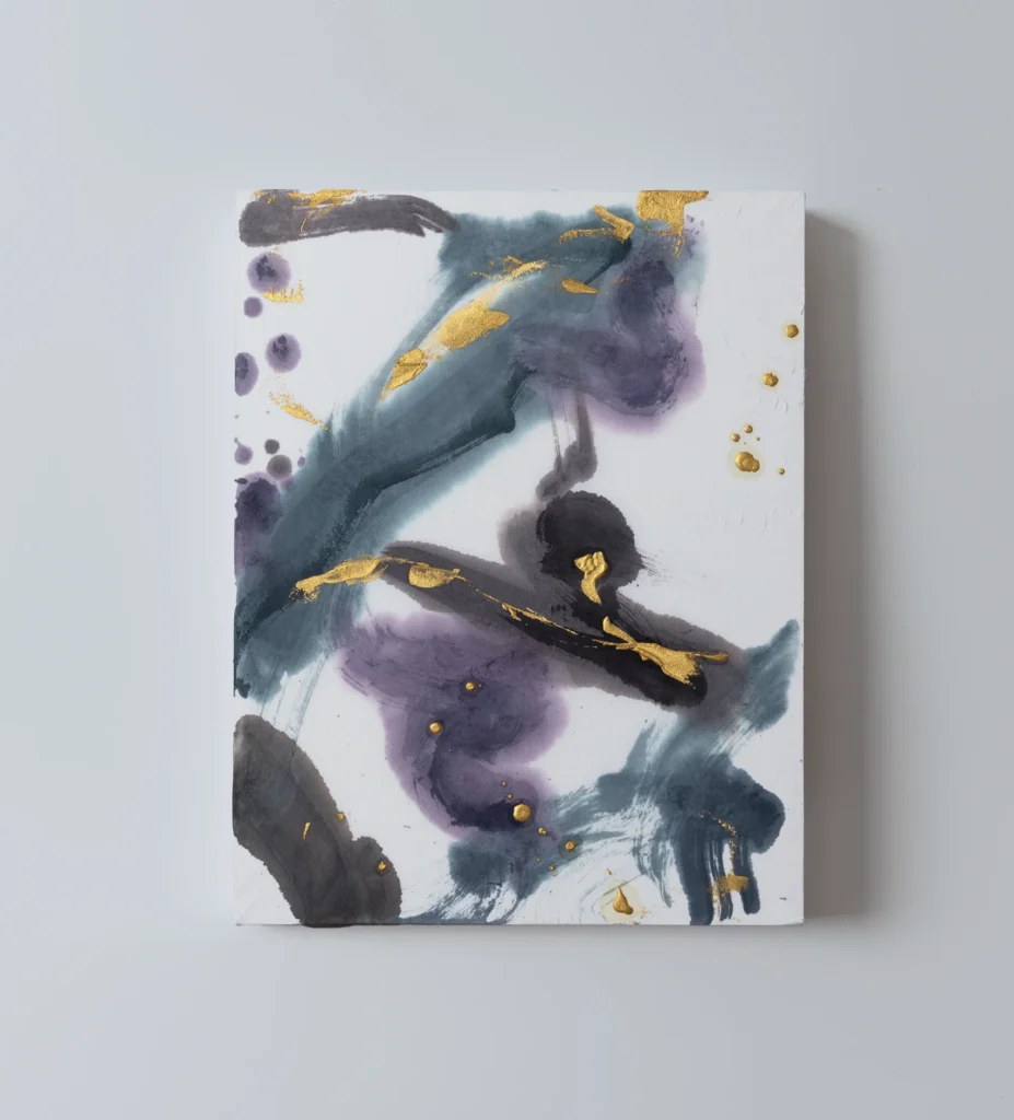 墨としては日本で唯一、伝統的工芸品に指定されている「鈴鹿墨」の色をメインのメディアとした抽象作品が並びます。